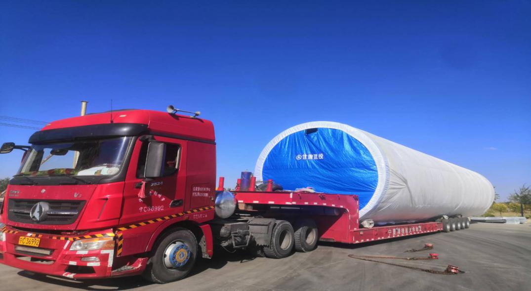 甘肅建投新能源公司華潤吳起長城二期50MW風(fēng)電項(xiàng)目首套塔筒順利發(fā)貨