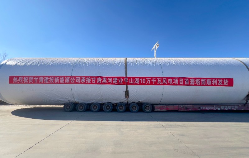1月16日,由甘肅建投新能源科技股份有限公司承制的甘肅黑河建業(yè)平山湖10萬千瓦風電項目首套塔筒順利發(fā)貨!