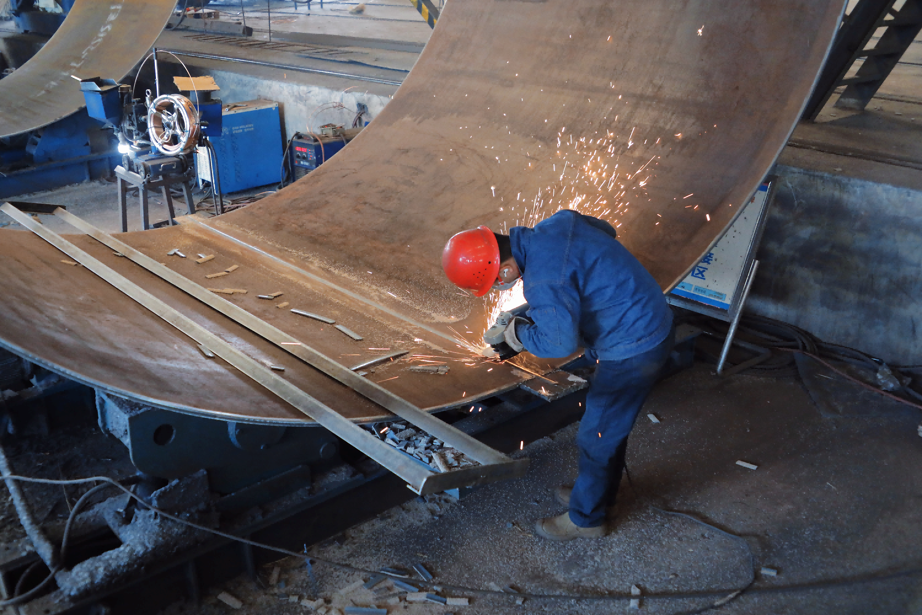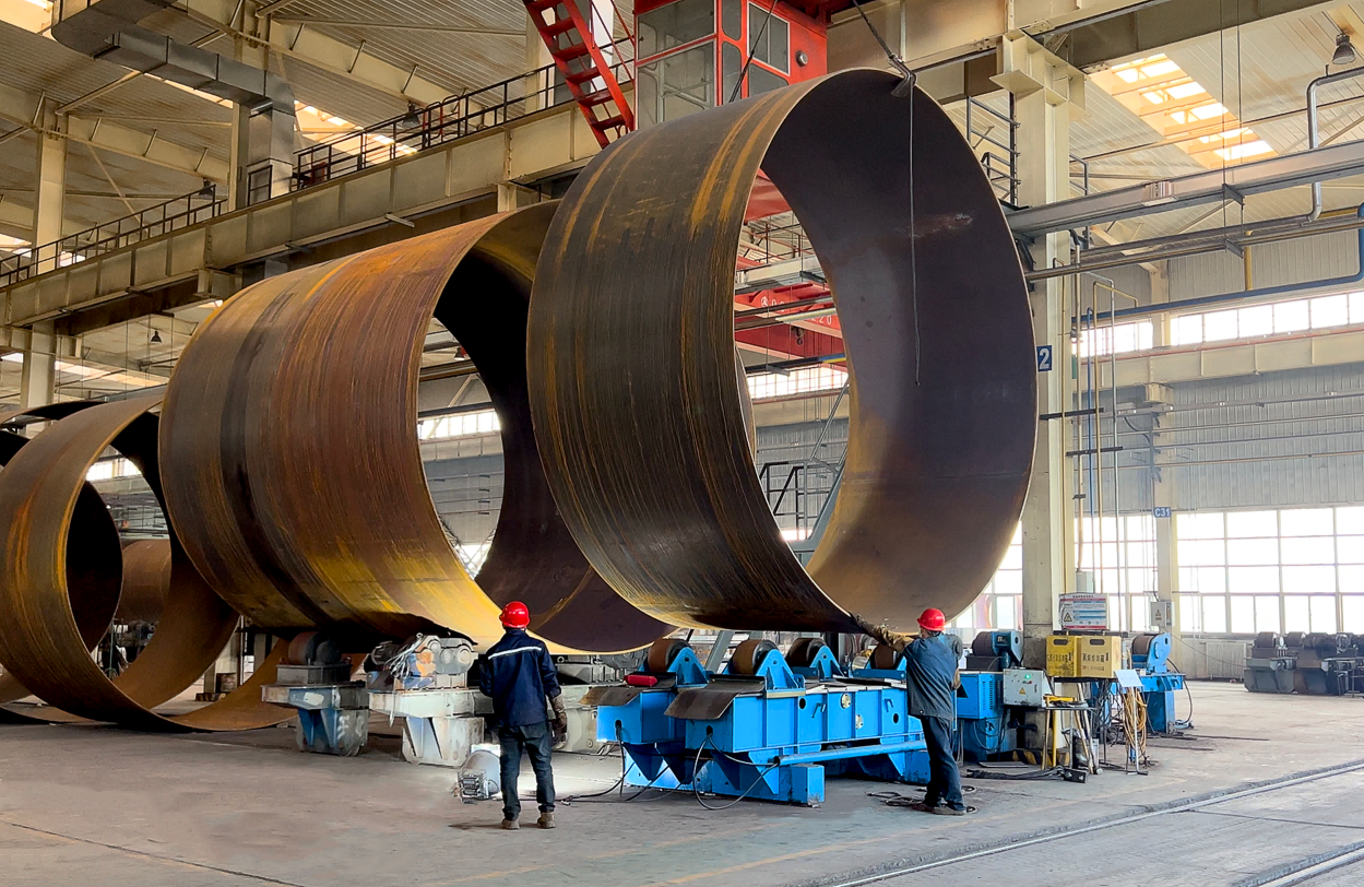 在千里之外的新疆巴里坤和烏魯木齊基地,建設(shè)者們同樣斗志昂揚(yáng),與時(shí)間展開激烈賽跑。巴里坤基地內(nèi),弧光閃爍,機(jī)械轟鳴,處處洋溢著熱火朝天的建設(shè)氛圍。該基地承建的金風(fēng)科技新疆天山北麓新能源基地I、Ⅲ標(biāo)段風(fēng)電項(xiàng)目,是國(guó)家首批“沙戈荒”大基地外送通道新能源項(xiàng)目之一,為金風(fēng)GWH221-9.1MW大兆瓦機(jī)型,筒體最大直徑為6.43米。該項(xiàng)目是新能源公司開拓新疆市場(chǎng)、深化區(qū)域戰(zhàn)略布局的關(guān)鍵一步,意義非凡。項(xiàng)目初期面臨Q420NE低合金高強(qiáng)度結(jié)構(gòu)鋼板焊接焊后存在延遲裂紋現(xiàn)象、環(huán)境溫差影響防腐漆膜厚度不均等難題,技術(shù)團(tuán)隊(duì)通過研發(fā)應(yīng)用多道焊工藝,加強(qiáng)焊接質(zhì)量管理,實(shí)施焊前預(yù)熱、過程預(yù)熱、焊后緩冷,改進(jìn)焊接、防腐工藝參數(shù)等措施,同時(shí)采用與Q420NE材質(zhì)化學(xué)成分、力學(xué)性能相匹配的低氫型焊接材料,以及強(qiáng)自愈、耐腐蝕等特性的新型防腐材料,有效保障了塔筒的質(zhì)量與使用壽命。目前,該項(xiàng)目已完成2000余噸的生產(chǎn)。