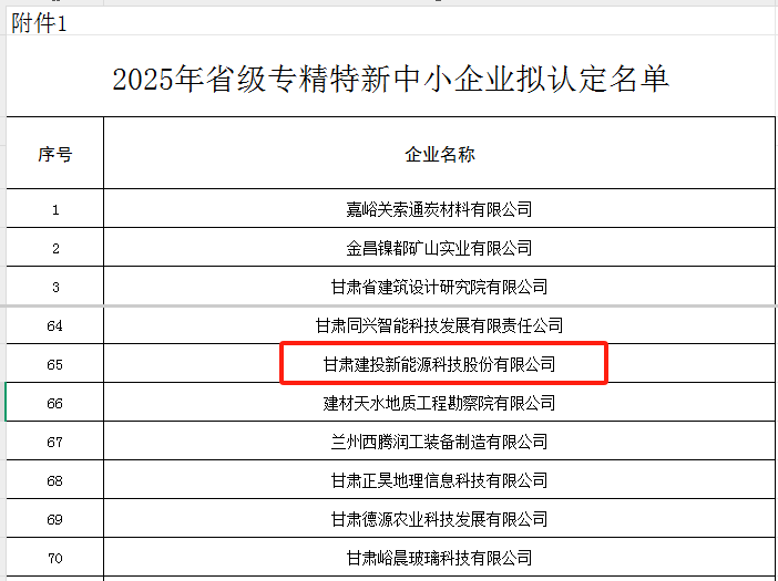 近日,甘肅省工業(yè)和信息化廳公布了2025年度“專精特新”中小企業(yè)認(rèn)定名單,甘肅建投新能源科技股份有限公司憑借在新能源領(lǐng)域的卓越表現(xiàn)和創(chuàng)新能力,成功獲評甘肅省“專精特新”優(yōu)勢企業(yè),這不僅是對公司過往成績的高度認(rèn)可,也為未來發(fā)展注入了強(qiáng)大動力。