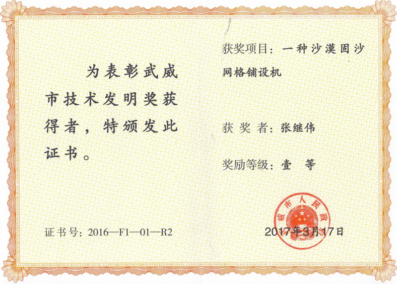 一種沙漠固沙網(wǎng)格鋪設(shè)機(jī)-獲獎?wù)撸簭埨^偉