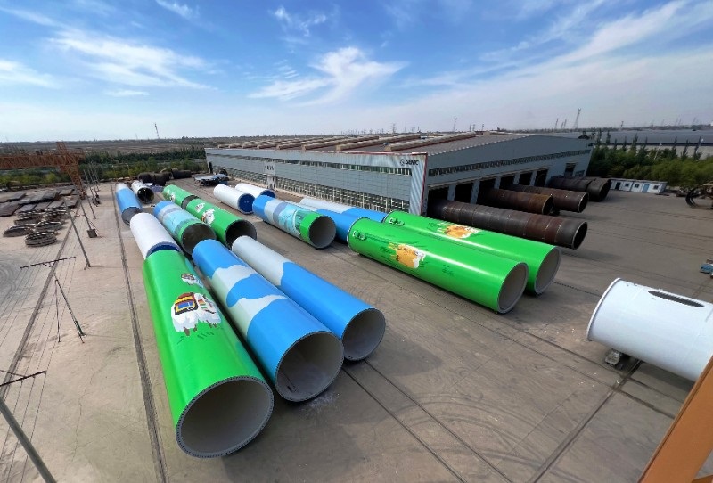 在風電塔筒制造領域,公司擁有壓力容器A2資質、電力施工總承包貳級資質及承裝(修、試)電力設施許可證四級認證,為產品研發(fā)與工程實施奠定了堅實基礎。生產基地總面積達51,100平方米,涵蓋現(xiàn)代化生產廠房、專用噴涂線及露天材料存放區(qū),并配備46,000平方米的內附件制造車間和50,000平方米的塔筒存放區(qū)域,形成規(guī)?;⒓s化的生產布局。通過采用高強度鋼材及先進的焊接、防腐工藝,公司確保塔筒產品在極端風場環(huán)境下的結構穩(wěn)定性和長周期耐久性,可適配1.5MW至7.0MW不同功率機組需求。截至目前,公司已累計完成60余個風電項目,交付塔筒超1,100套,覆蓋國內多樣化風場場景,并與金風科技、明陽智能、華潤電力等頭部企業(yè)建立了長期戰(zhàn)略合作,市場份額持續(xù)擴大。