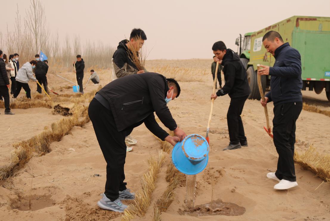 隨后,團(tuán)建成員實(shí)地觀看了固沙車機(jī)械化鋪設(shè)草方格的演示,并由教練帶領(lǐng)全體團(tuán)建成員進(jìn)行“麥草方格”鋪設(shè)以及梭梭種植體驗(yàn)活動(dòng),大家切身體會(huì)到了治沙工作的艱辛及沙漠地區(qū)開(kāi)展綜合生態(tài)治理的重大意義。同時(shí)也體驗(yàn)到機(jī)械化治沙對(duì)標(biāo)準(zhǔn)化、高效化治沙及解放勞動(dòng)力的重要意義。