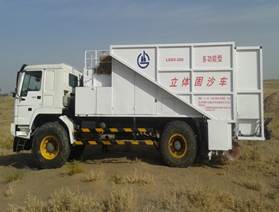 甘肅建投研發(fā)的“多功能立體固沙機”,是世界首臺機械化治沙機,處于國際領先水平,擁有11項實用新型技術及發(fā)明專利,具有自主知識產權。立體固沙車將稻草在沙漠表面鋪設成1×1m、2×2m等不同規(guī)格的草方格,草方格規(guī)格可根據(jù)沙漠地形、風向進行靈活調整。麥草插入沙地,增加沙漠表面的粗糙度,消減風力,阻止流沙移動,截留雨水,防風固沙作用非常明顯,比人工固沙的質量要高、效果更好。